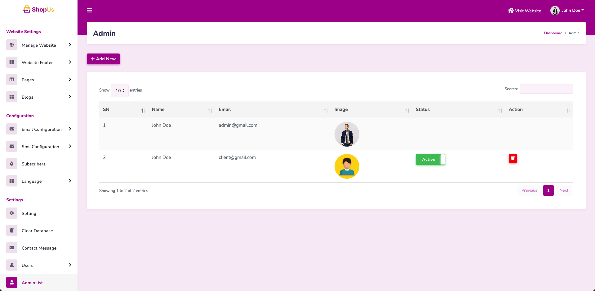 Admin Panel: https://shopus.minionionbd.com/admin/login