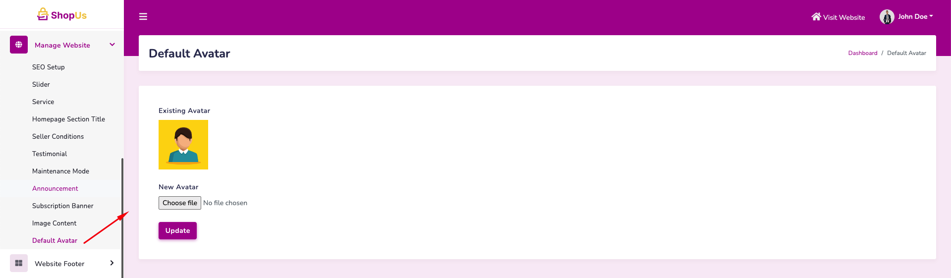 Default avatar can be manage from the admin panel. Go to "Manage website >> Default avatar" from sidebar. See:
