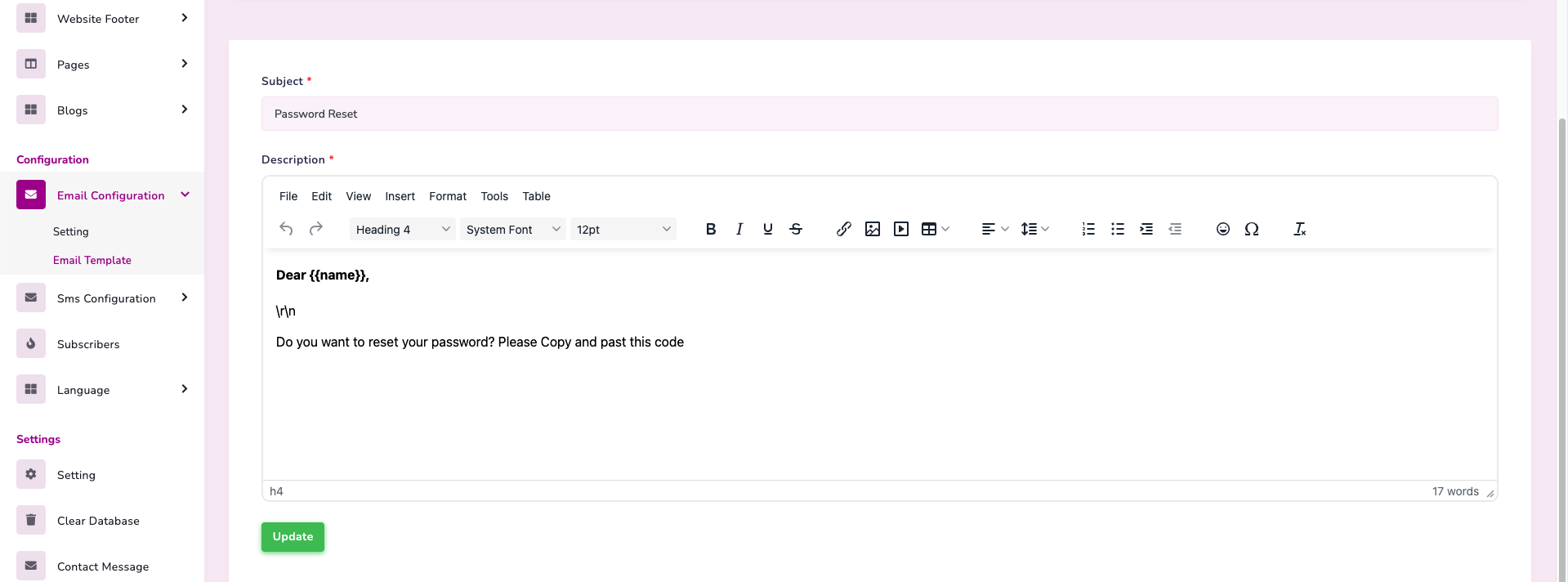 FAQ Page can be manage from the admin panel. Go to "Pages >> FAQ" from sidebar. See:
