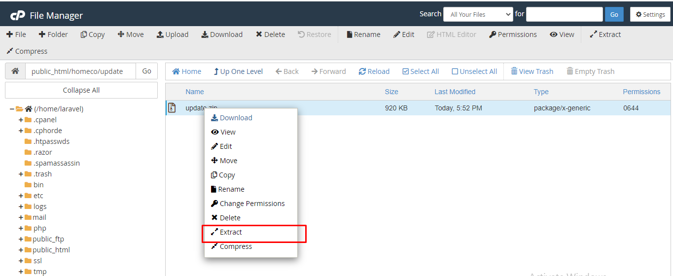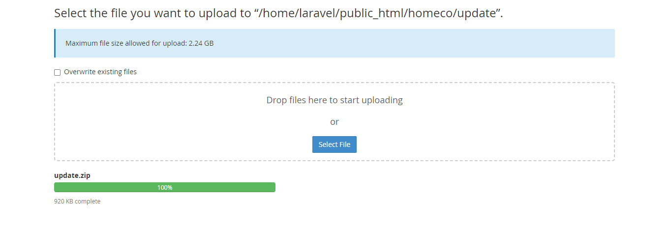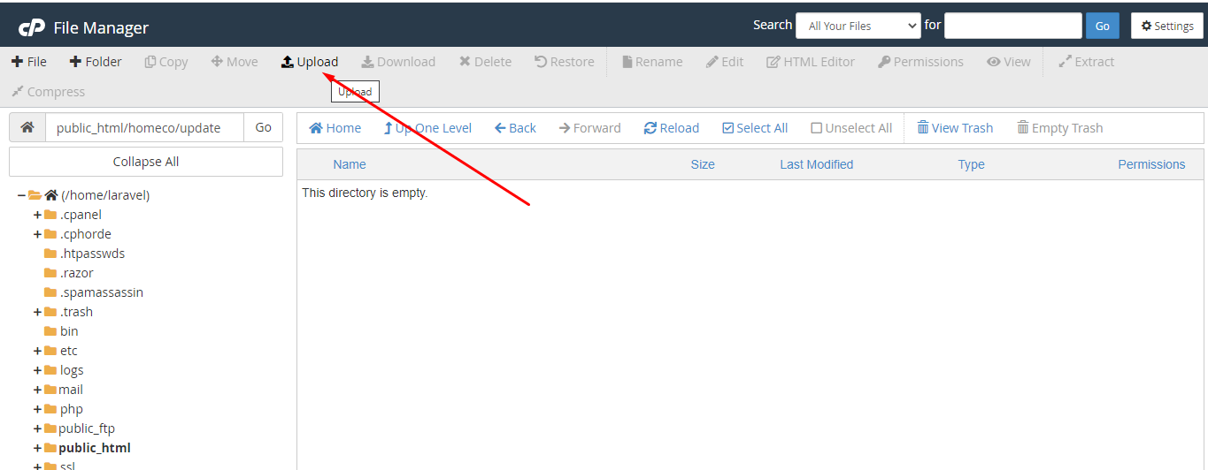 Now goto your server and root project directory. Create e new folder, the name of folder is "update". See: