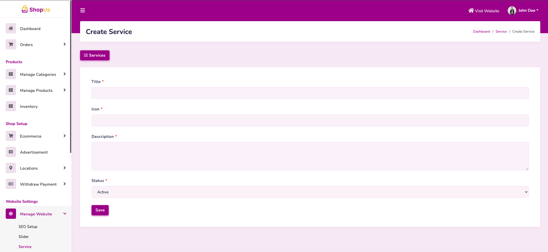 Service can be manage from the admin panel. Go to "Manage website >> Service" from sidebar. See:
