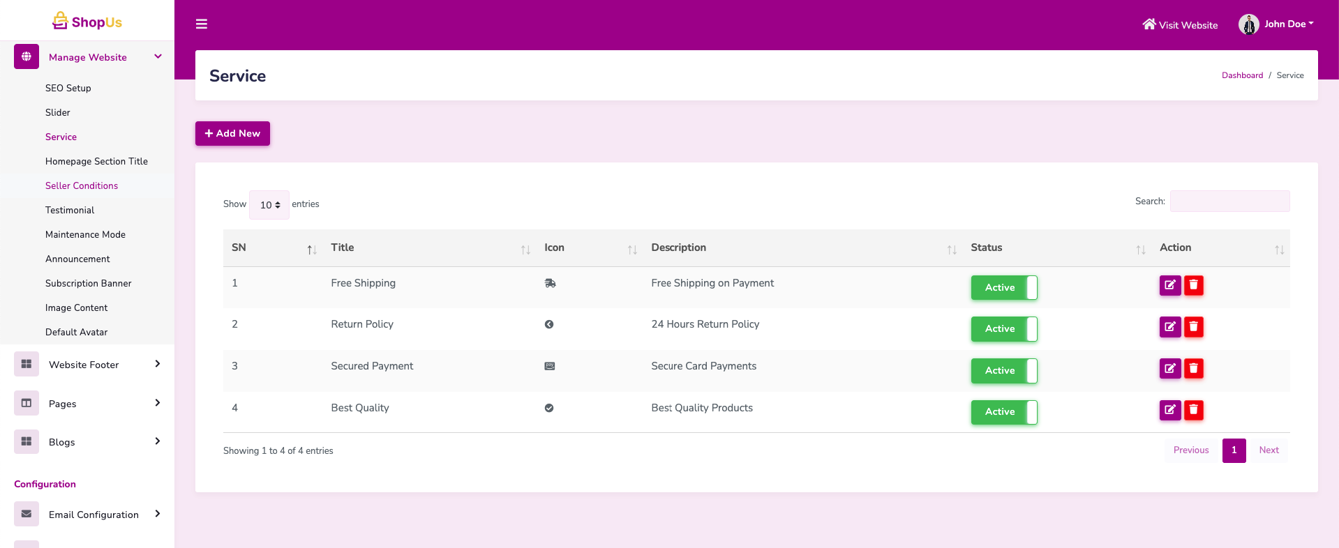Service can be manage from the admin panel. Go to "Manage website >> Service" from sidebar. See: